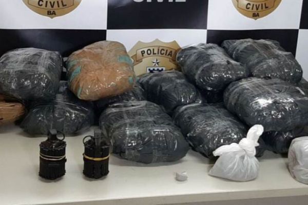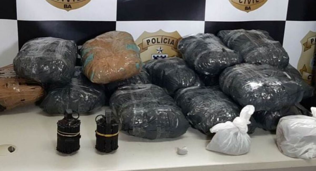 A 6ª Coordenadoria Regional de Policia do Interior (Coorpin) apreendeu aqui em Itabuna nada menos que quinze quilos de maconha e duas granadas. A droga estava escondida numa casa no bairro São Caetano e os agentes prenderam uma mulher em flagrante. A suspeita é que ela guardava a droga pra alguma quadrilha.