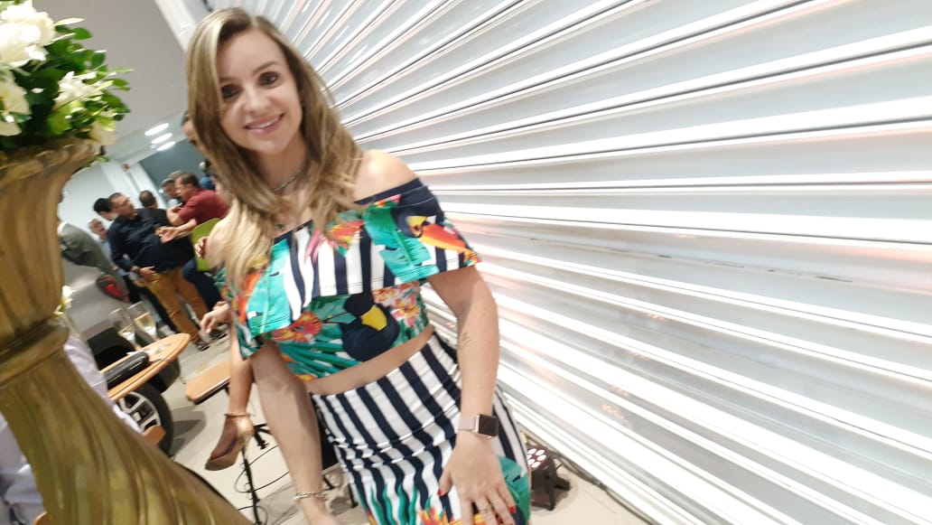 Andressa Vaz iluminando o coquetel da Jeep.