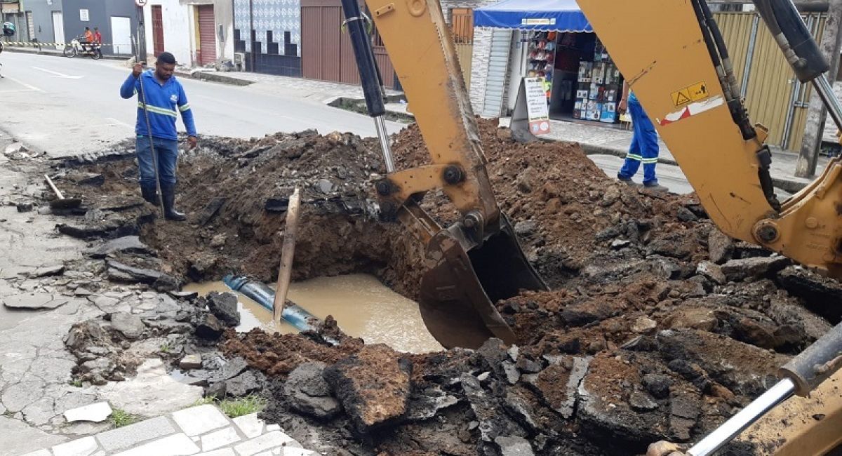 Mais um rompimento de adutora interrompe fornecimento de água em alguns bairros da zona sul de Itabuna (Foto: divulgação)