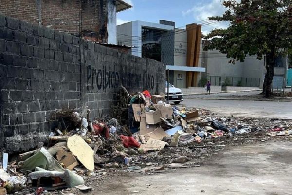 Além do Condomínio Jardim América, outro ponto viciado de descarte inapropriado de lixo é a Trav. Santa Rita, em frente à Escola Marechal Humberto de Alencar Castelo Branco, no Califórnia. Com um agravante: profissionais de barbearias estão descartando lâminas cortantes sem nenhum tipo de embalagem de proteção.