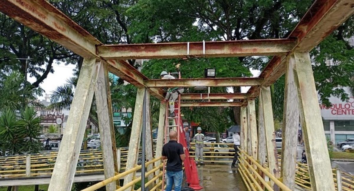 Por conta do furto de cabos e luminárias, o Departamento de Iluminação Pública da Secretaria de Infraestrutura e Urbanismo (SIURB), fez novamente a reposição da iluminação na passarela Carlos Alves Oliveira, sobre o Rio Cachoeira, nas imediações da Câmara Municipal de Vereadores.