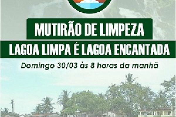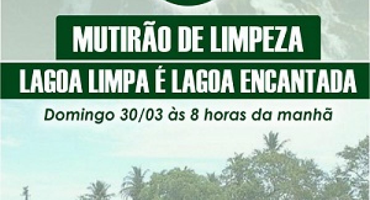 MUTIRÃO DE LIMPEZA NA LAGOA ENCANTADA VAI ACONTECER NESTE DOMINGO , DIA 30